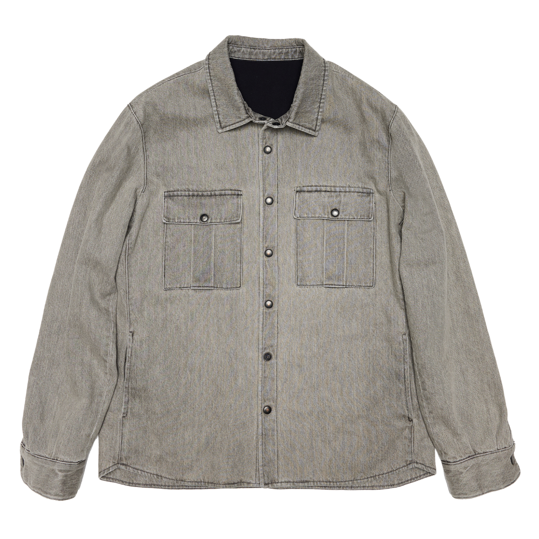 This regular-fit overshirt jacket is crafted from 100% cotton denim in a soft grey tone, offering structure without rigidity and comfort without compromise. The fabric reveals subtle depth and variation, giving the piece a naturally lived-in character that improves with wear.